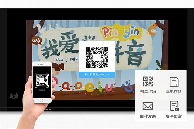 局域网内,支持与电脑、平板、手机等终端设备无线连接传屏分享,可直接通过移动设备轻松远程操控课件演示、文件传输,拍摄学生笔记即时上传大屏共享。无论是书写记录,还是课堂内容,均可生成二维码,支持手机扫码一键保存带走。
