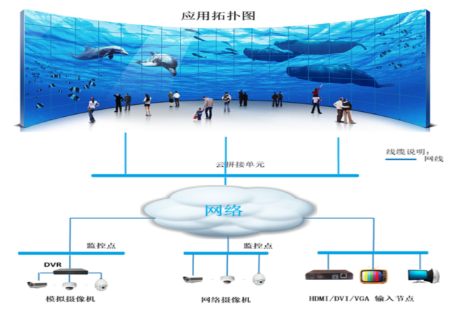 云拼接构建的不再仅是更大面积的显示区域,而是建立了互联互通的显示平台。自由灵活的网络使将使云拼接屏拥有更广泛的应用范围,为用户创造更多更新的应用模式。